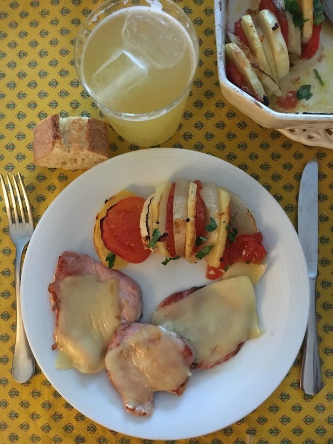 Se puede comer sólo o como acompañamiento de pescados o carnes, a vuestro gusto. Yo aproveché para acompañar a un lomo de cerdo al ajillo con queso: