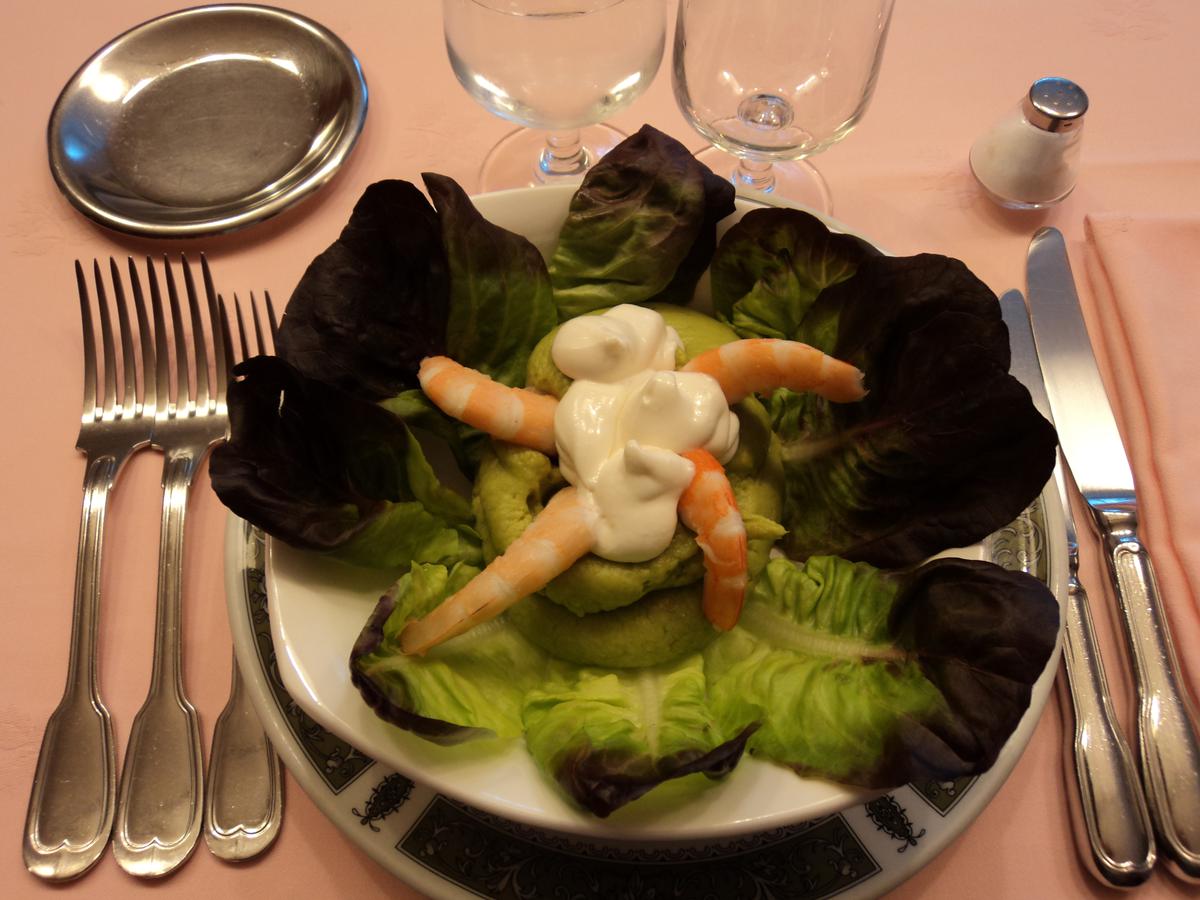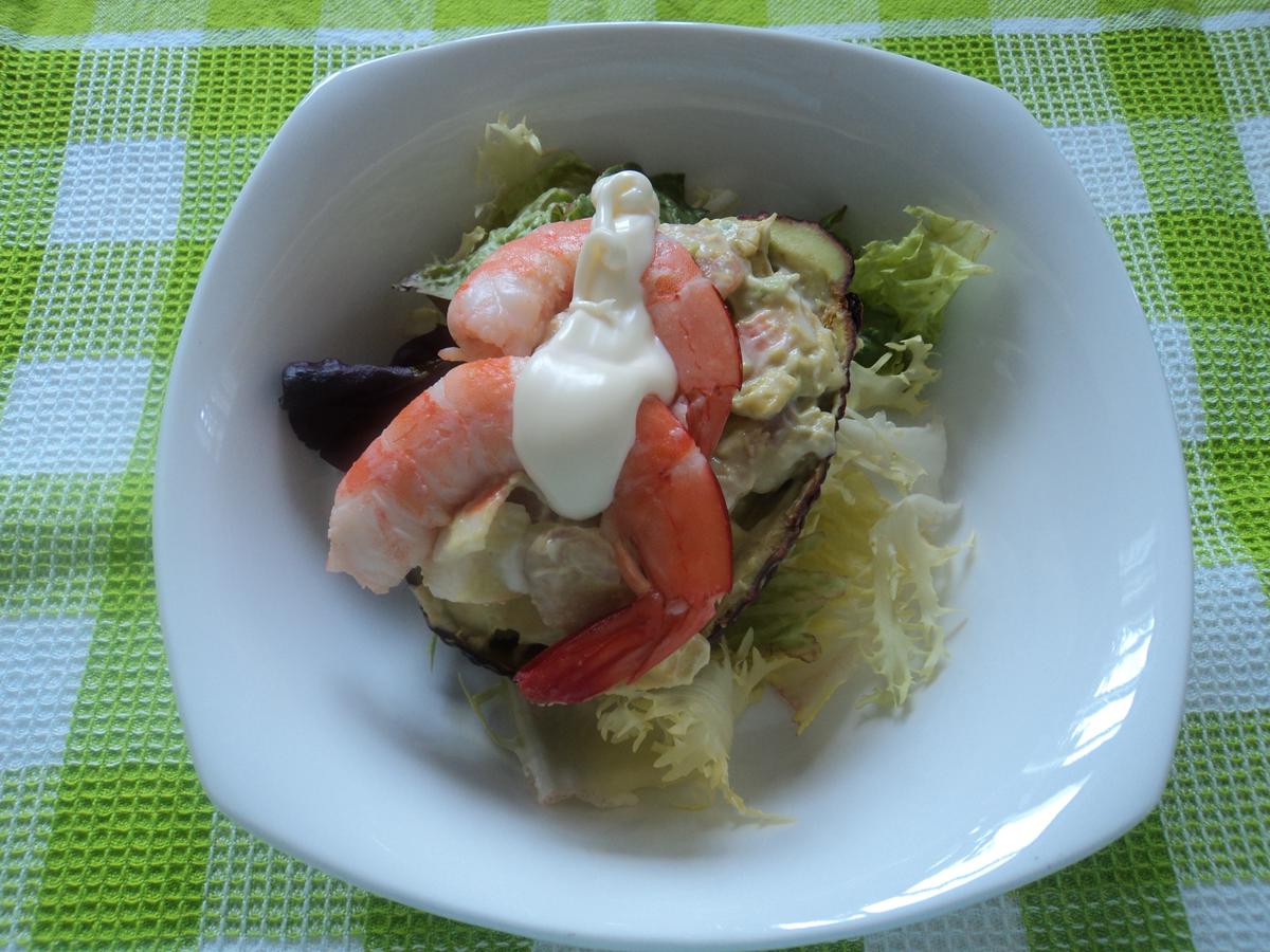 Aguacate relleno de aguacate, gambas y mayonesa