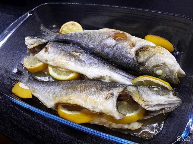 Después metemos al horno las lubinas a 250º durante una hora. Al sacarlas comprobaréis que la piel se queda crujiente y que el jugo del limón ha entrado en contacto con la carne del pescado, para dotarla de un sabor cítrico estupendo.