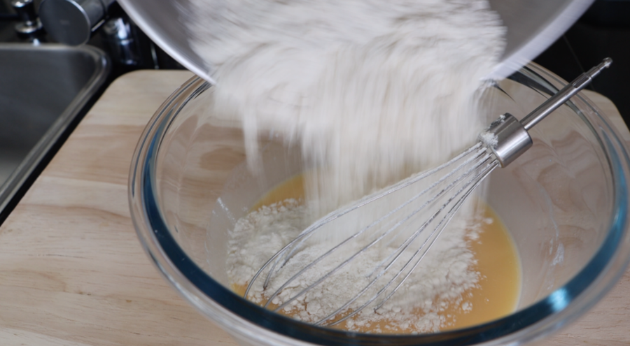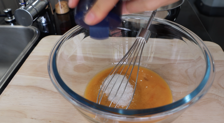1. Batir los huevos con sal y azúcar. Agregue aceite y kéfir. Mezclar todo.