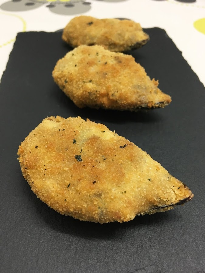 - Elige las conchas más grandes de los mejillones y rellénalas de la masa.