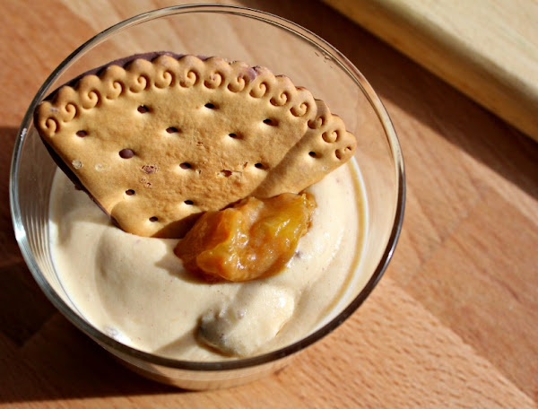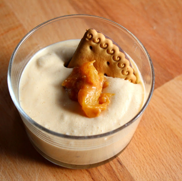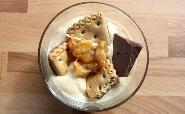 Para servir, decoramos con unos trocitos de galleta y dados de mango.