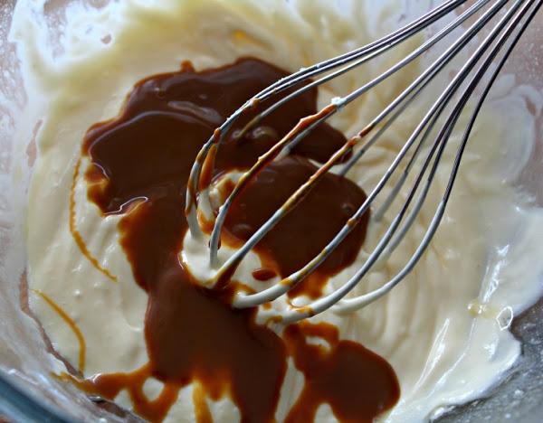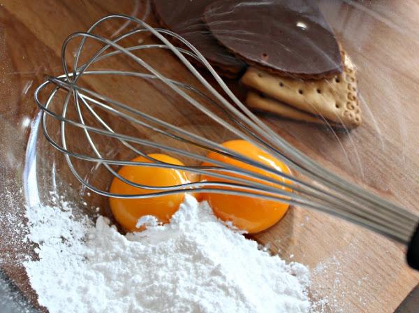 Batimos las yemas con el azúcar glas, hasta que quede cremoso. Añadimos el Mascarpone y el dulce de leche y ponemos las claras a punto de nieve con el pellizco de sal.