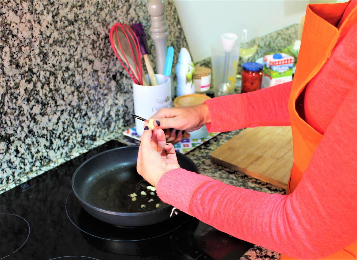 Cortamos el ajo a trocitos y lo salteamos con un poco de aceite de oliva virgen extra
