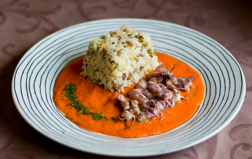La historia surgió de casualidad, a muchos de los participantes los conocía o bien por twitter o por el curso de galletas que hice hace dos semanas (y cuya entrada debería escribir, no tengo perdón). Veo una conversación que me llama la atención, más que nada porque hace poco hice algo parecido a lo que me sugieren pero pidiendo al respetable que sean ellos quienen me sugieran los ingredientes. Aquí se lo montan de otra forma: ¿quieres participar? pues sugiere un ingrediente y entre todos los que surjan, cúrrate una receta. Esta vez los ingredientes fueron tomate, arroz, chipirones, lentejas y piquillos. Ea!