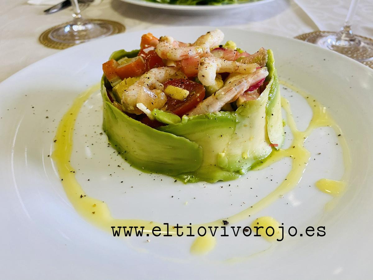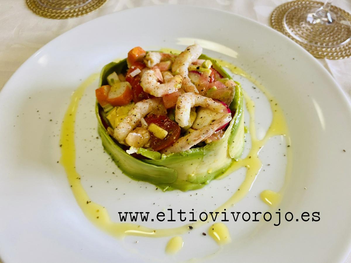 Hoy os traigo un plato rapidísimo de preparar que además queda precioso en la mesa: timbal de gambas y aguacate. Necesitáis muy pocos ingredientes y es perfecto para presentarlo en una ocasión especial. Así que si os gusta la comida sana en cualquier época, podéis guardar esta receta, por ejemplo, para Navidad. Si lo presentáis en tamaño pequeño puede ser un aperitivo o entrante que sin duda le encantará a vuestros comensales. Yo os confieso que me encanta el aguacate, y como no deja de ser una ensalada rapidísima de preparar, suelo tomarlo con frecuencia (me encanta en verano también porque es sabrosa y ligera, pero a la vez saciante gracias al aguacate). Lo único que si lo tomo como plato principal, me cuido de usar un aro de emplatar más grande.