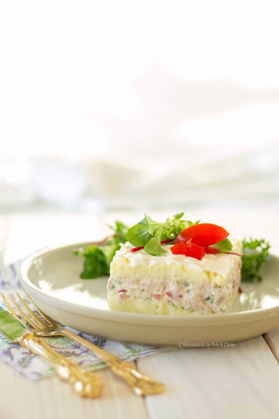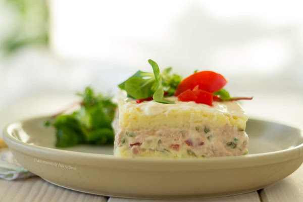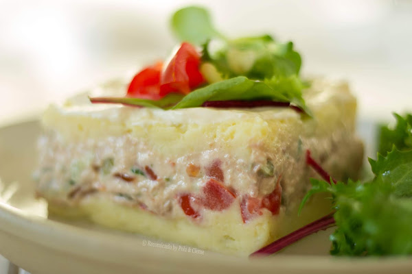 Hola amigos, ¿Qué tal las fiestas? ¿Cómo lo están pasando?. Espero que todos disfrutando de sus familias y amigos. Hoy traigo para ustedes una receta con las tres B buena, bonita y barata, es un Entrante frío a base de puré de papas o patatas y un relleno en el medio de atún, aceitunas y otros productos más que verás en los ingredientes.