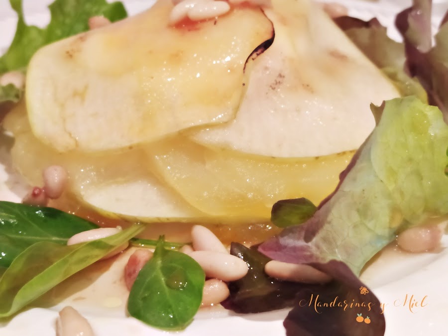 Y como decoración del plato, Karlos utiliza kikos, que yo he cambiado por piñones fritos.....