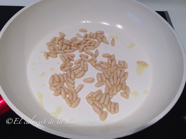 Terminaremos de emplatar poniendo unos piñones y coronando con perejil o con unas hojas de zanahoria