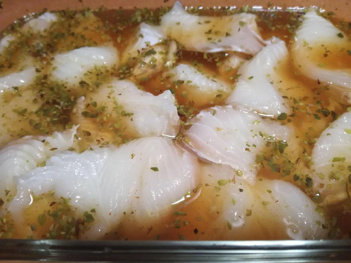 Esta semana nos toca pescado, y que mejor que hacer una versión. Como el precio del cazón está algo caro, lo he sustituido por tintorera que esta de oferta un taco entero. El precio del kilo de tintorera es de 4,95€, cuando el cazón está a unos 10€. Reconozco que ha salido muy rica y jugosa está tintorera en adobo. Deje en adobo toda la noche, para que así absorbiera todo el sabor de las especias.