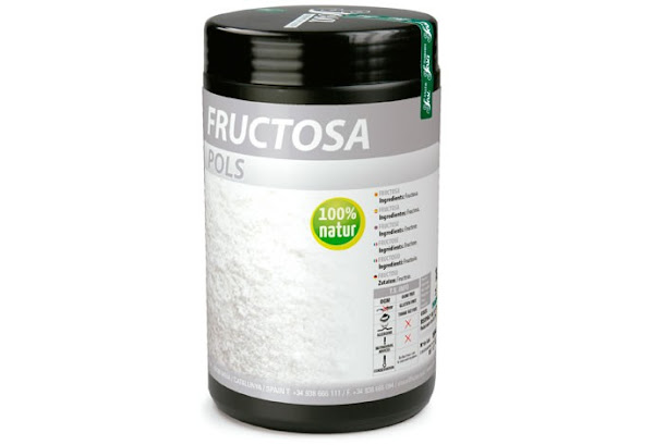 La fructosa es el azúcar que se encuentra en las frutas, de ahí su nombre, pero también lo podemos comprar en formato deshidratado. Se utiliza mucho en pastelería dietética y alimentos para deportistas.