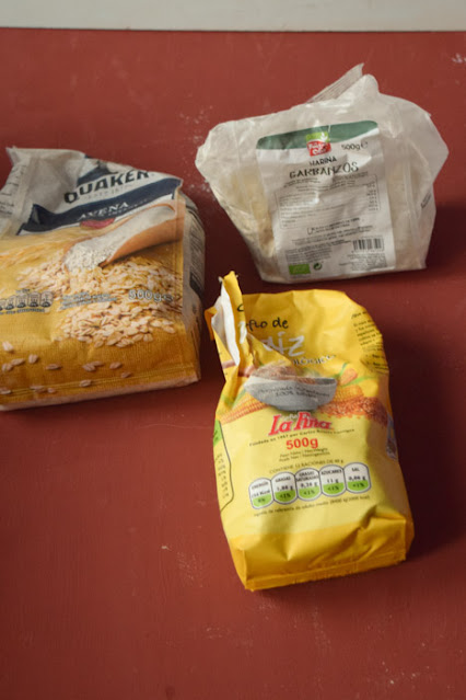 Aquí he metido harinas varias aunque faltan muchas, pero estas son las que más uso en casa. Miento, se me olvidó sacar foto a la Maizena.Muchas recetas usan harina de avena y aunque la venden ya molida, es más barato comprarla entera y molerla aunque tengo que reconocer que yo la uso poco, la avena la uso principalmente para hacer porridge.El gofio lo uso poco, para alguna receta dulce, pero sobre todo para cosas saladas.