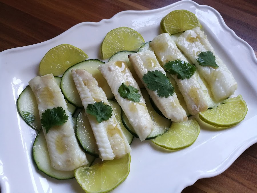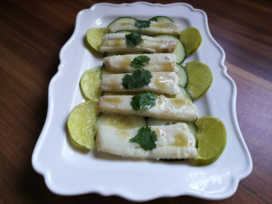 - Colocar el pescado encima del pepino
