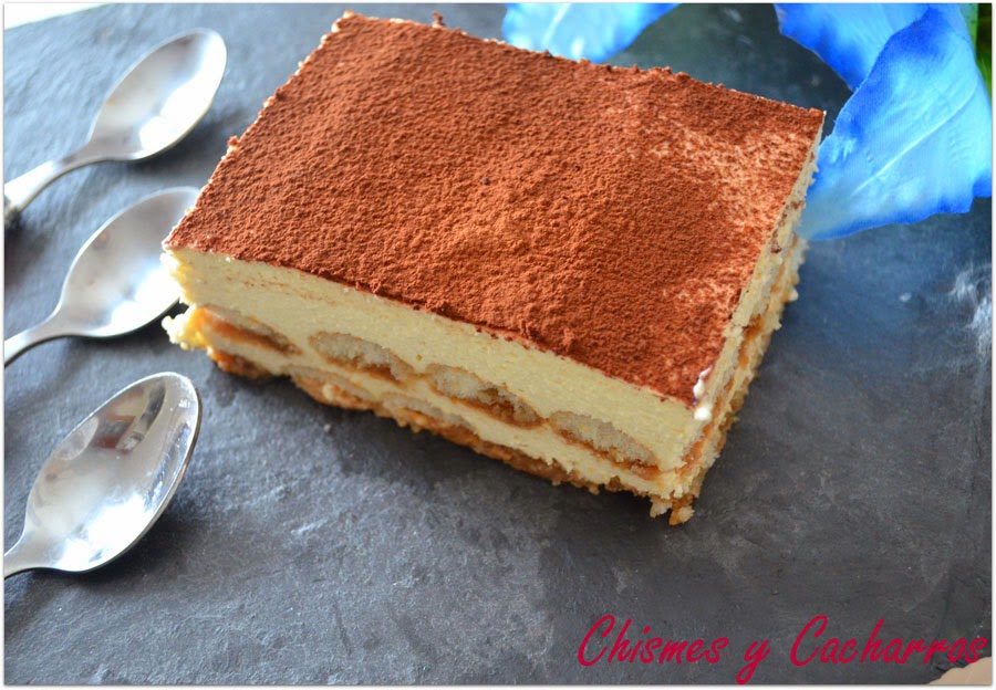 Después de la pasta hoy toca algo dulce para el fin de semana que ya tenemos casi encima y que mejor que un Tiramisú, tengo muchas versiones de él, pero aún no había publicado la receta clásica, bueno mejor dicho la receta a mi manera, como a mí me gusta. Me gusta que esté con textura como mousse por eso le pongo gelatina y así al cortar se queda como si fueran pasteles de tiramisú. Este postre es de mis favoritos, se prepara en poco tiempo y el resultado siempre es delicioso.