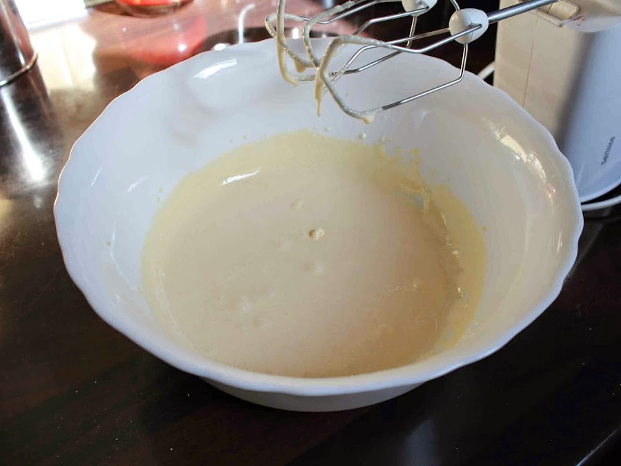 1. En un bol, batimos las yemas de huevo con los 70 g de azúcar con una batidora eléctrica hasta obtener una crema blanquecina.