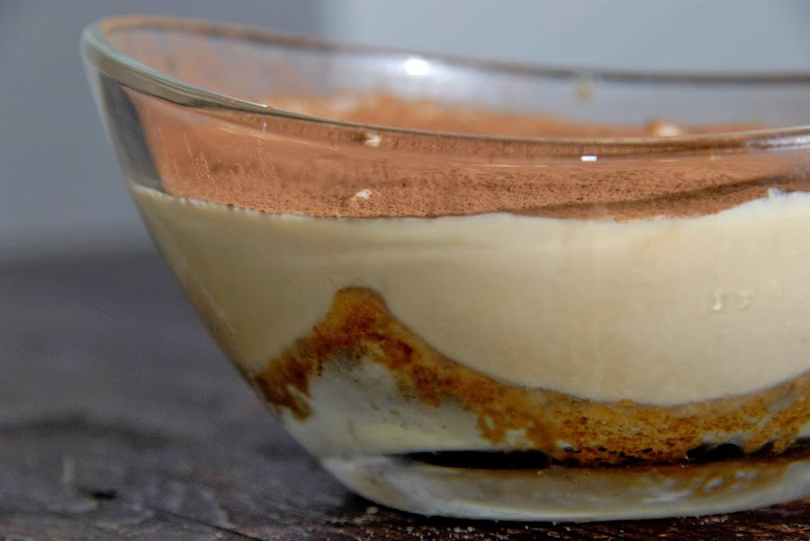En el fondo del recipiente poner una capa de bizcochos borrachos, encima un par de cucharadas de la crema. Espolvorear cacao por encima y volver a repetir todo hasta que se llene el recipiente.