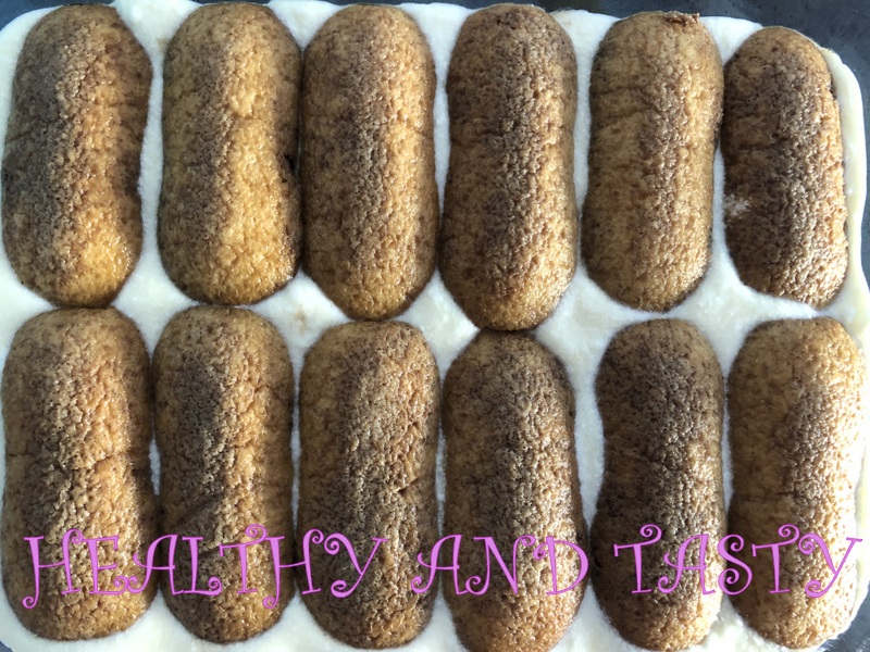 Necesitaremos una fuente honda o cuencos individuales. Ponemos en el fondo de la fuente una capa de bizcochos de soletilla remojados en la mezcla de café y licor. Debemos tener cuidado de no mojarlos demasiado. A continuación, cubrimos la capa de bizcochos con la mitad de la crema de mascarpone. Sobre la crema, ponemos otra capa de bizcochos sumergidos en café y terminamos cubriéndolo todo con la última capa de crema bien extendida.