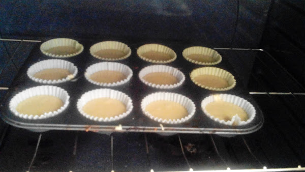 Vertimos en las cápsulas de papel dentro del molde para cupcakes y horneamos a 180° C por 25 minutos o hasta que al insertar un palito salga limpio.