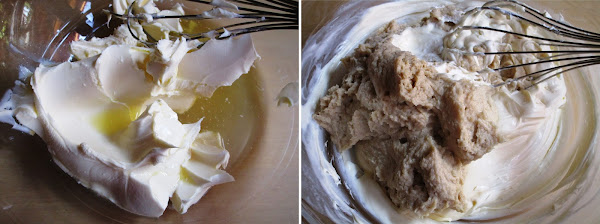 Para terminar con las elaboraciones, prepararemos la mousse de queso mascarpone con castañas de forma tradicional, preparando una masa bomba con las yemas y el azúcar, que mezclaremos con el queso, el puré de castañas y las claras montadas a punto de nieve. Os va a entusiasmar, es realmente deliciosa.