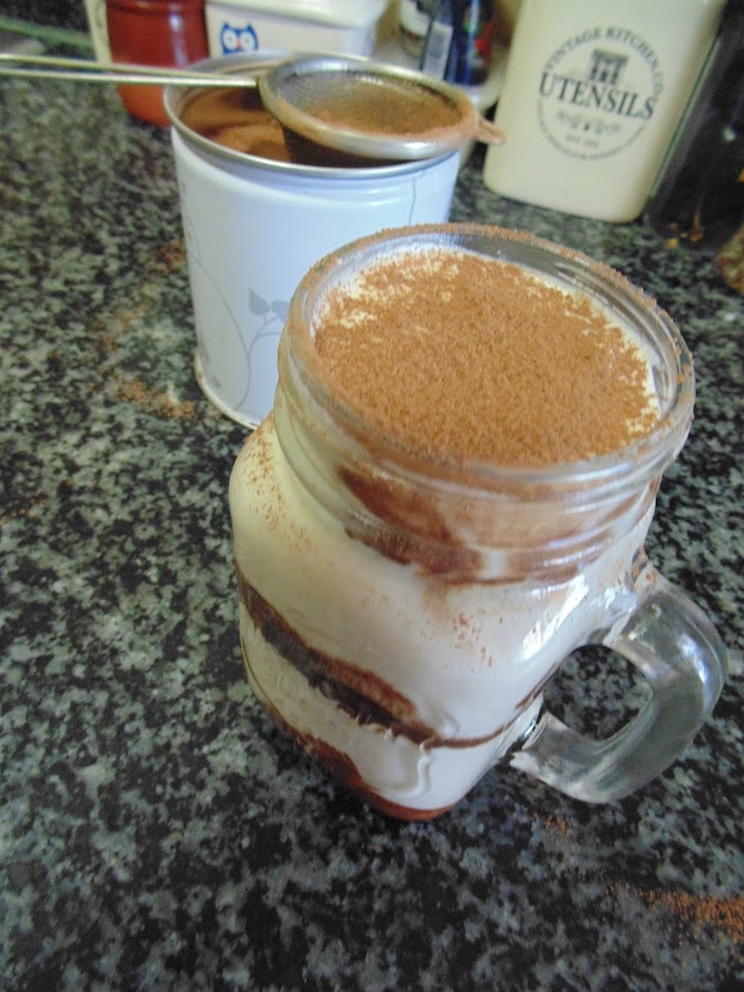 Por último, vertemos cacao en polvo con un colador. Dejamos reposar un mínimo de 5 horas en la nevera y estará listo para ser servido! Toda una experiencia!