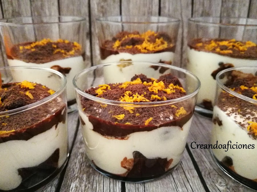 Vamos a preparar este riquísimo tiramisú de chocolate y naranja. Lo podéis hacer en vasos individuales, justo para la porción de cada comensal o en una fuente. Con las cantidades de esta receta salen 6 vasos, pero si queréis más solo tenéis que doblar las cantidades. Ya veréis lo rico que esta. Empezamos.