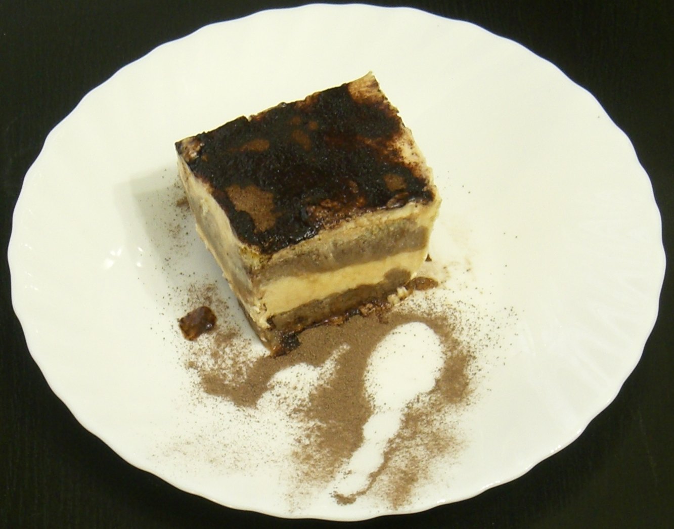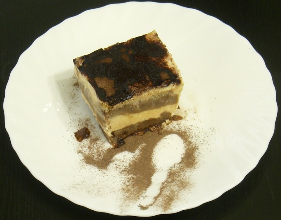 Una vez hecha la crema, es hora de preparar el cacao, mezclando la leche y el cacao en polvo, aunque debe quedar oscuro para que el postre tenga sabor a chocolate. La leche tiene que estar fría o templada, no caliente, para que al poner la crema encima no se desmonte. Empapar los bizcochos en el cacao, tienen que quedar blandos, pero no muy encharcados, así que es mejor escurrirlos un poco antes de ponerlos en el molde. Forrar la parte de abajo del molde con los bizcochos y ahora tenéis que decidir si ponéis una capa o dos de bizcochos, yo he puesto una, pero hay quien prefiere más bizcocho que crema. Una vez cubierto de bizcocho, poner una capa de crema que cubra bien. Poner dos o tres capas, terminando siempre con la crema. Meter el tiramisú en la nevera y dejar que tome una buena consistencia. Antes de servir espolvorear un poco de cacao por encima.