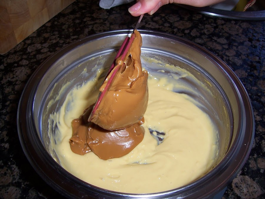 Ahora mezclamos en primer lugar los ingredientes más espesos el sabayón y el dulce de leche hasta conseguir una crema.