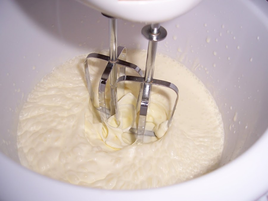 Montamos la nata (crema de leche) (para que nos monte bien tiene que estar bien fría incluso el bol)