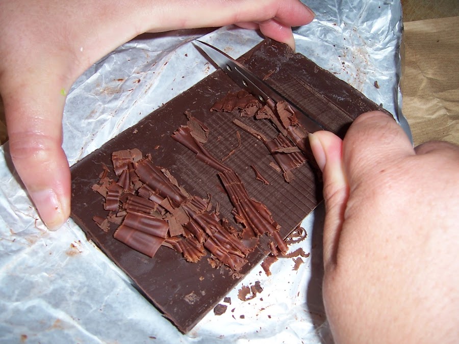 Decoramos con cacao en polvo o con virutas de chocolate que las haremos rallando con un cuchillo una tableta de chocolate por la parte de atrás.