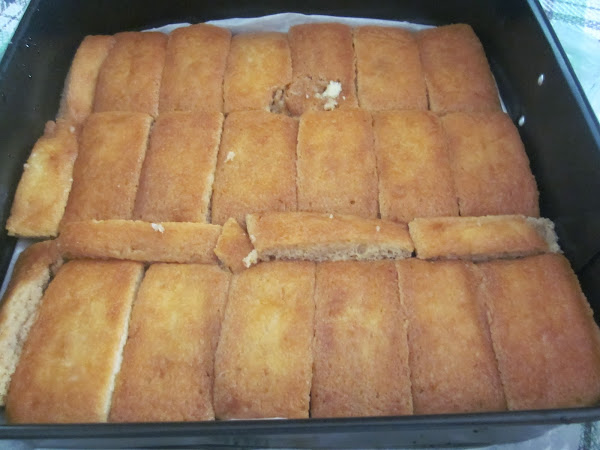 Añadimos sobre la primera tanda de sobaos y metemos en la nevera como 4 horas.