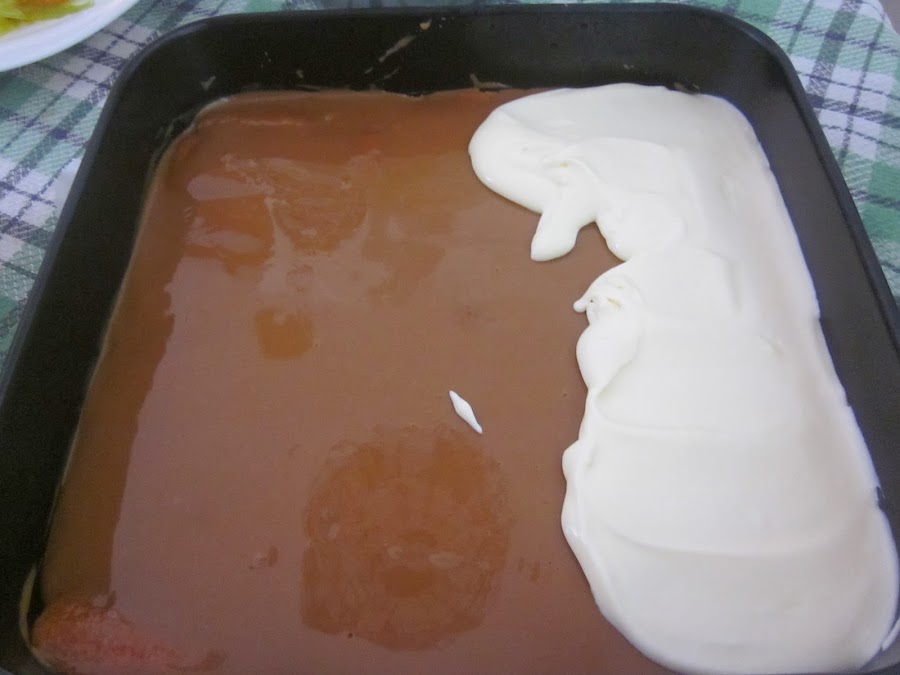 Pero....sí ,tenía pensado hacer tiramisu, por que mi hijo,que llevaba 6 meses fuera ,de entre las comidas que quería que le preparára, una era tiramisu y algo con dulce de leche....así que...voilá!!!,,se me encendió la bombilla y le dí las dos cosas en una.
