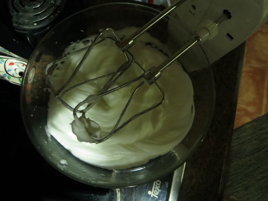 Pasadas esas dos horas, separamos las yemas y las claras. Batimos las yemas con los otros 125 gramos de azúcar, cuando estén bien mezcladas, echamos el queso mascarpone y seguimos batiendo. En otro bol, montamos las claras a punto de nieve y lo unimos con la mezcla anterior.