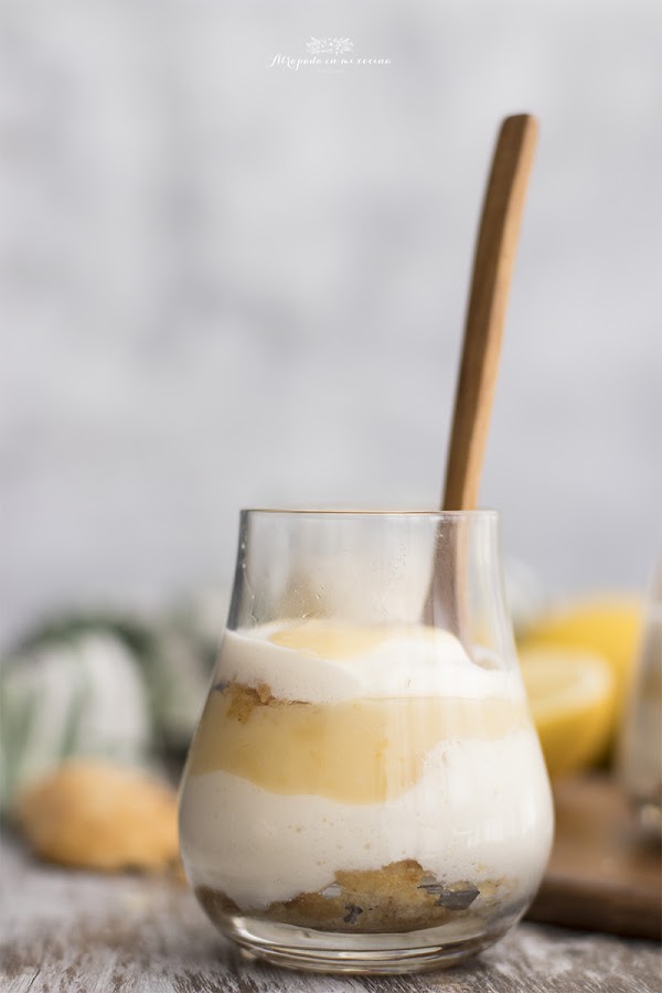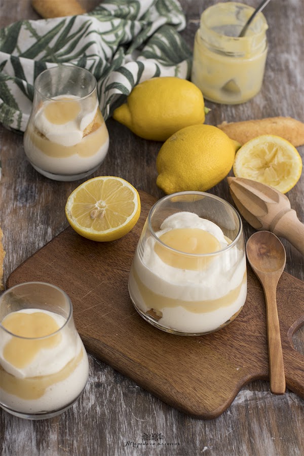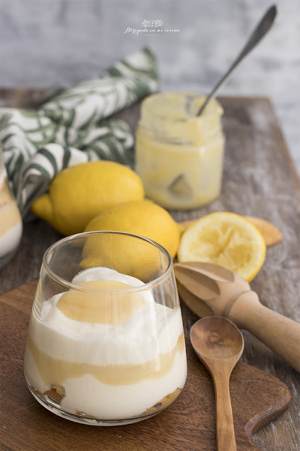 De nuevo nos atrevemos con otro postre en vasitos, y ya van ......., bueno unos cuantos. He versionado el famoso postre italiano tiramisú para darle un intenso sabor a limón, a lo que ayuda la crema de lemon curd y el limoncello en el que van bañado los bizcochos. El resultado es un postre ideal y fresco para los amantes del limón. La diferencia con el postre original es la falta de café y de algún otro licor como Amaretto que puede llevar el tiramisú original, y además tampoco lleva cacao en polvo