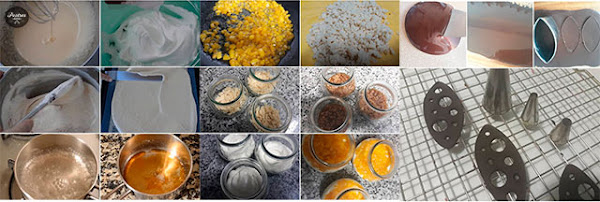 Una vez que se haya endurecido, ponemos las pieza sobre una rejilla y con ayuda de un soplete y unas cuantas boquillas metálicas de diferentes tamaños vamos haciendo los agujeros con cuidado (se trata de ir calentando las boquillas con el soplete e ir haciendo los agujeros, no hace falta calentar demasiado las boquillas ya que si las calentamos mucho nos quemaremos al cogerlas, con calentarlas un poco ya se pueden hacer bien los agujeros. Dejamos secar y reservamos para la decoración.