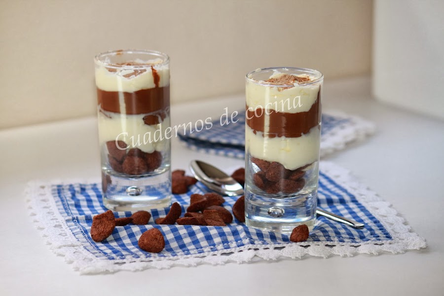 Para montar el tiramisú, ponemos en la base un puñadito de cereales de chocolate. Cubrimos con una capa de mascarpone. Añadimos Nutella al gusto y cubrimos con otra capa de queso. Espolvoreamos con cacao en polvo y metemos al frigorífico.