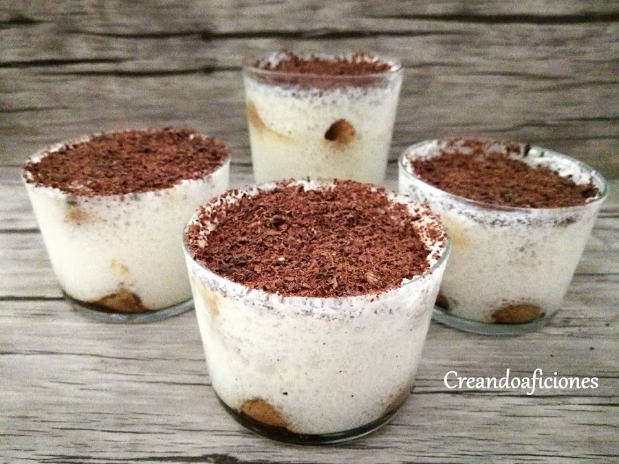 Cambiamos el queso mascarpone y quitamos las yemas de huevo, para hacerlo un poco más saludable pero casi igual de rico que el tiramisú tradicional. Con estos ingredientes dan para 4 vasos. Empezamos.