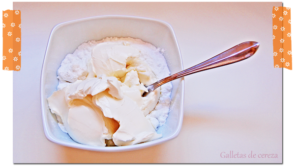 En otro bol mezclamos los dos quesos con el azúcar glass con una cuchara y cubrimos la capa de bizcochos con la mitad de esta crema.