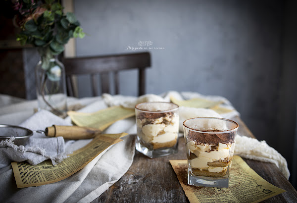 Hoy vengo con una idea exprés para tener un postre preparado en un pispás. Además se trata de un postre clásico, como es el tiramisú. Una forma rápida y fácil de prepararlo y triunfar con nuestros invitados. Con las cantidades que os doy salen dos vasos como los de la foto, pero podéis prepararlos en formato más pequeño usando vasito más pequeños, y si queréis preparar más cantidad solo tenéis que doblar ingredientes.