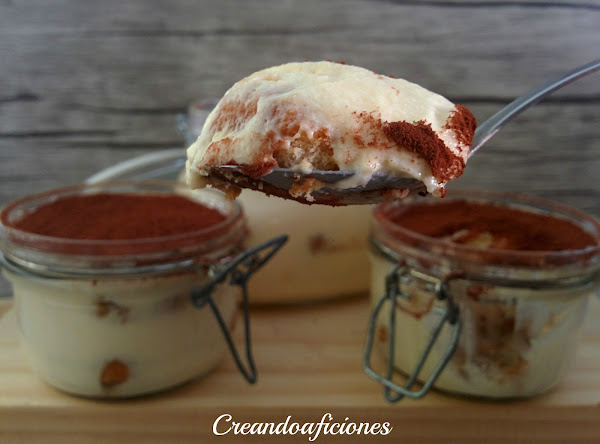 Ponemos los bizcochos en los vasos con la cara del azúcar boca abajo añadimos la crema por encima, ponemos más bizcochos y otra capa de crema y por ultimo echamos el cacao en polvo mejor cuando vayamos a comerlos. Dejamos enfriar en la nevera 24 horas.