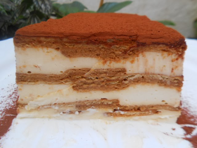 Como más preparo el tiramisú es con galletas maría nos gusta que quede más entero,pero se puede poner bizcocho...