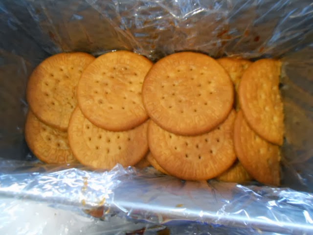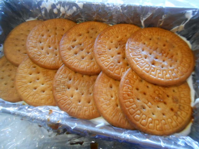 Mojamos las galletas con el café y vamos colocando superpuestas en la base del molde,ponemos dos capas de galletas.