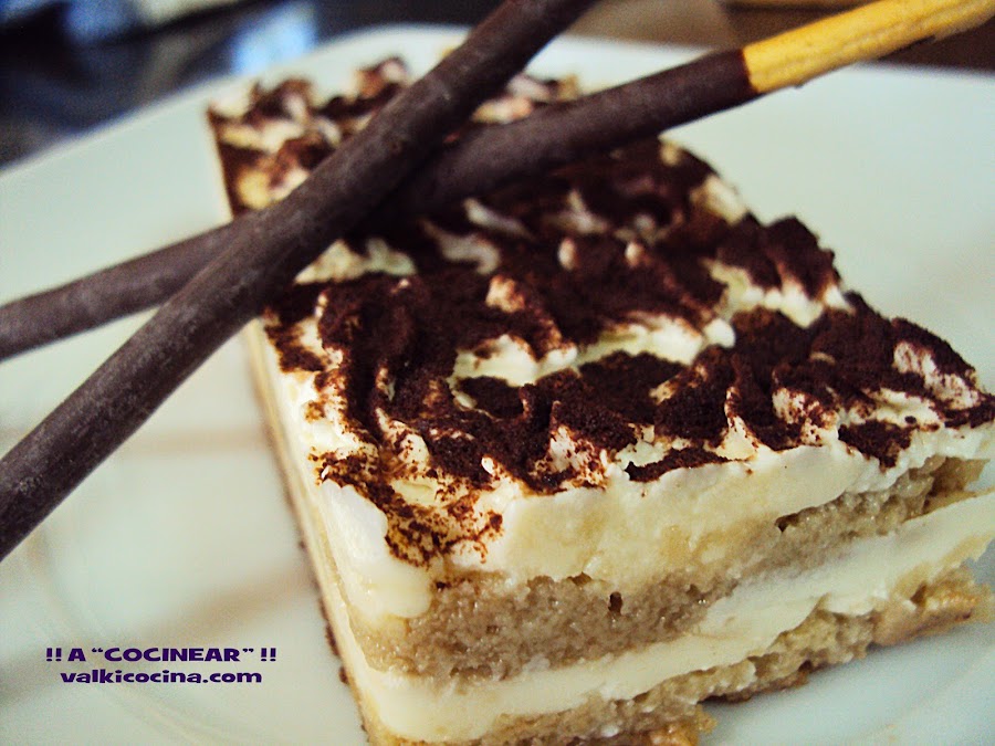 Si no te quieres complicar a la hora de hacer un rico tiramisú, o jugártela con el huevo crudo que lleva en la receta original ...; aquí tienes una versión que se hace en nada de tiempo, y en la cual lo más complicado, ... quizá sea preparar un café soluble.