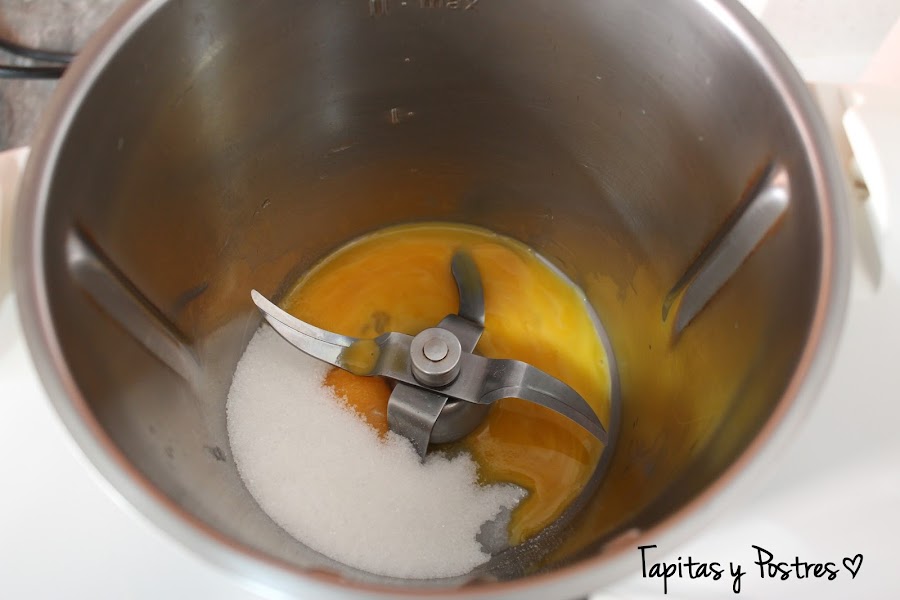 Vamos con la crema. Ponemos las yemas con el azúcar en el vaso y programamos 6 minutos, 80º y velocidad 3. Dejamos dentro del vaso hasta que se enfríe.