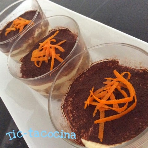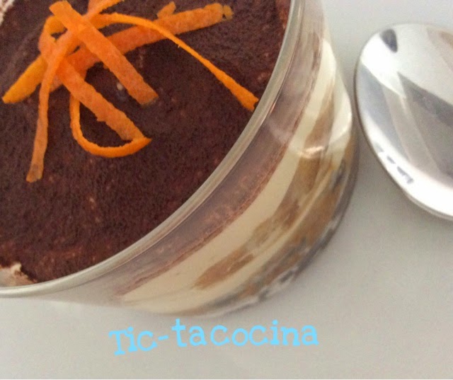 Yo he elegido ponerlo en vasitos individuales, lo veo mas curioso a la hora de servir pero se puede hacer en un molde grande e ir cortando porciones y lo he decorado con unas tiritas de piel de naranja, puede ser también rallada o unas virutas de chocolate blanco que también le van muy bien.
