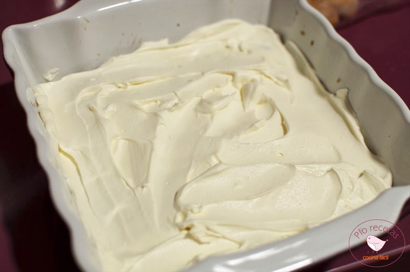 Una vez mojados los bizcochos ponemos una capa de crema de forma que se cubran totalmente.