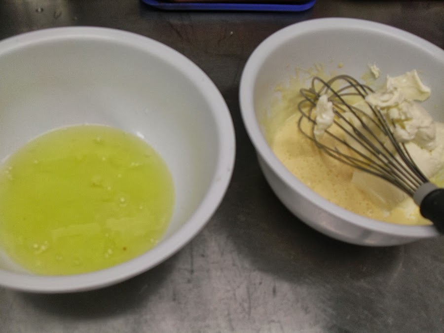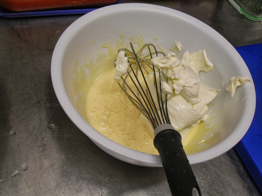 Mezclar con la crema de yema y queso, con movimientos envolventes para que quede todo bien integrado.