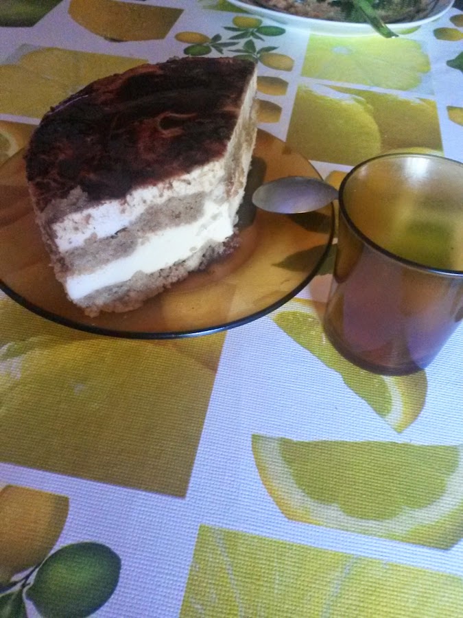 - Cubrimos con los bizcochos empapados en el café-licor y volvemos a poner otra capa de crema (podéis poner las capas que queráis, yo solo puse dos)