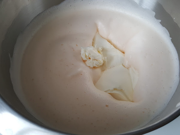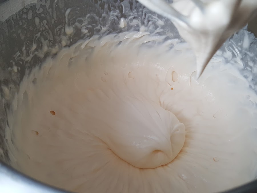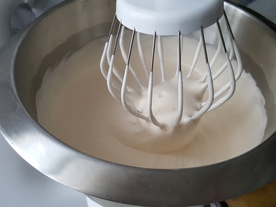 7. - No os asustéis si baja el volumen y se pone más liquido, que tenéis que seguir batiendo y veréis como empieza a montar, casi como la nata montada (crema de leche).