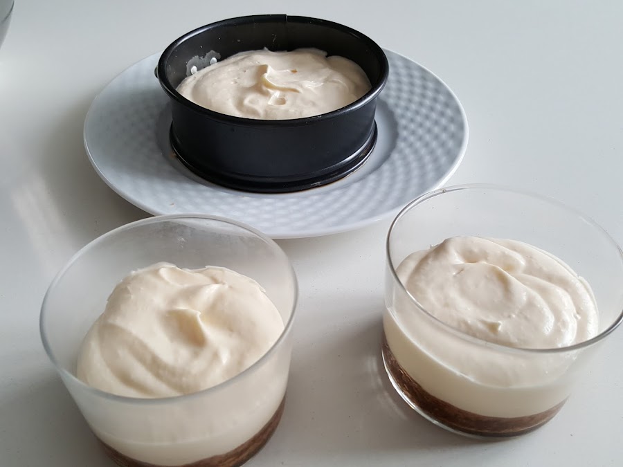 Este postre está mejor de un día para otro, sobre todo para poder desmoldarlo, en caso de que lo hagáis en grande. En los vasitos es más sencillo, porque no hay problema de que se deforme.