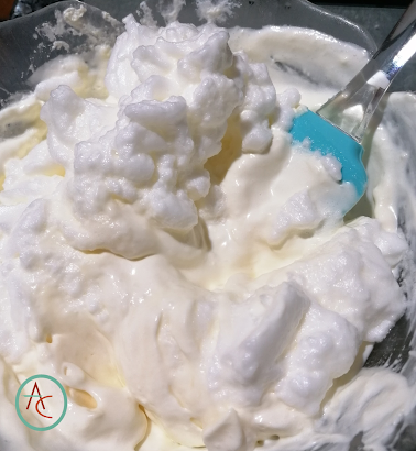 Montar las claras, añadir 10gr de azúcar Glas antes de terminar de montarlas